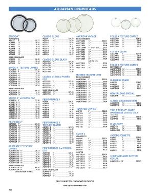 BASS DRUMHEADS AQCCPD18 18” ................................41.18 AQMOTCM14 14” ..........................40.04 AQHPSN14 14” ............................26.61