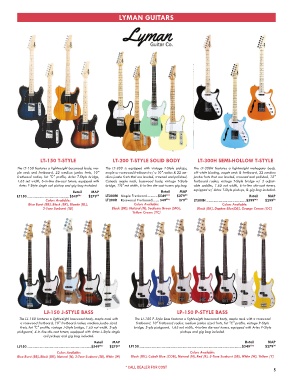 The LT-150 features a lightweight basswood body, ma- The LT-200 is equipped with vintage T-Style pickups, The LT-300H features a lightweight mahogany body,