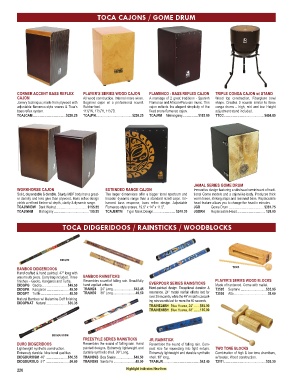 TCAJWHDW Dark Walnut ................................... $155.55 Flamenco-style snares. 19.5” x 14” x 11.5”. JGD Gome Drum ........................................ $381.75