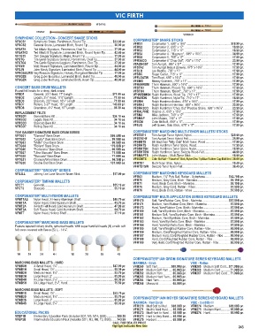 VFMTT Nylon Head, Hickory Shaft ............................................................. 37.19 pr. VFM181 Medium Soft, Yarn/Synthetic Core, Birch - Marimba ....................57.59B pr.