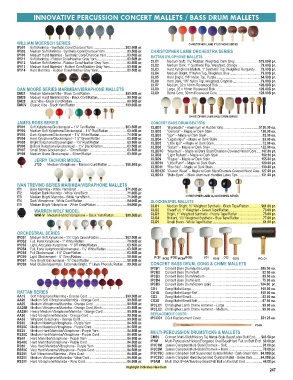 AA25B Medium Vibraphone/Marimba - Orange Cord, Birch .............................83.50B pr. IPCLC2 Christopher Lamb Chime Hammer – Medium ........................................99.00 ea.