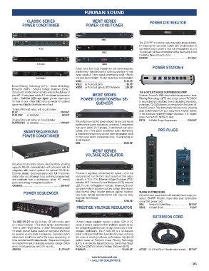 pure AC • 8 rear panel outlets & 1 front panel convenience MERIT SERIES Features Furman's SMP circuit which incorporates Linear