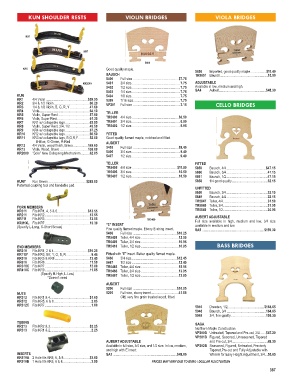 KR2 3/4 & 1/2 Violin .........................................60.20 VP201 Full size ......................................................3.15 CELLO BRIDGES