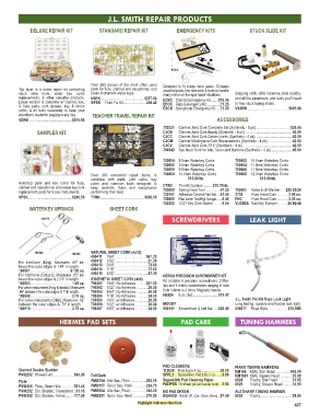 For valve instruments (Olds). Measures .42” 700305 1/64”, w/ Adhesive ..............26.00 J.L. Smith Fix Kit Rope Leak Light
