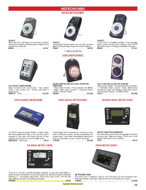 simultaneously to monitor tempo and pitch at the same time. Backlit LCD display w/ adjustable METRONOME-TUNER