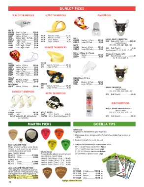 9004P Extra Large, 4-Pack ...........11.01 HEAVIES THUMBPICKS 9011MD Medium, 2-Pack ............$31.49 33R Refill Tube/20 .........................41.99