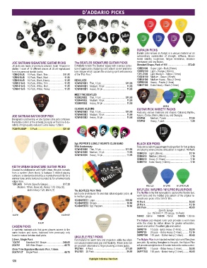JOE SATRIANI SATCH GRIP PICK 1CWH410B3 Medium, 10 pk .................................. 11.95 Nylpro, Cortex, Delrin, Black Ice, and Duragrip.
