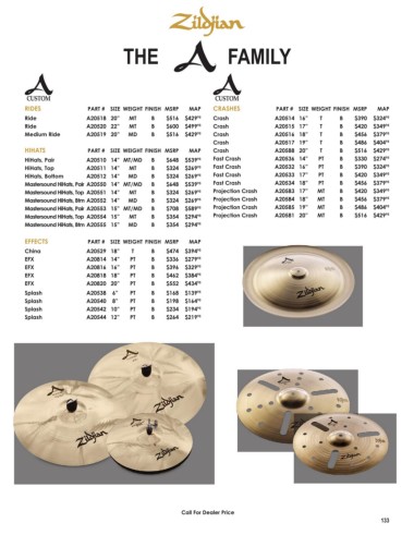 HiHats, Bottom A20512 14” MD B $324 $269 95 Fast Crash A20533 17” PT B $420 $349 95