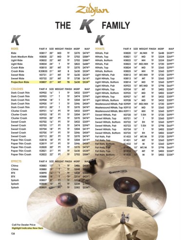 Sweet Ride K0731 21” MT TF $630 $524 95 Light HiHats, Pair K0812 14” MT/MH TF $720 $599 95
