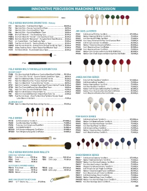 FT2 Multi-Tom Mallet/Hard Felt, “Fulcrum Notched” Handle ........................... 76.00 pr. IP2001 Extra Soft Marimba/Black Yarn/Birch ................................................$73.00B pr.