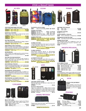 accessories pocket and holds up to 8 pair. TOURING STICK BAG degrees across and hang securely on marimbas, vibra-