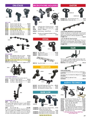 MY330 Shock-Mount Wireless Mic Clip ...............31.99 Condenser Mics ..................................54.00 using ⅝”- 27 female threads. Sturdy aluminum construction w/
