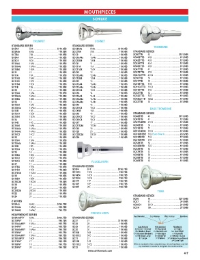 SC18HVY 18 ...........................................196.75B SC31C2 31C2 ........................................... 119.95B When a mouthpiece has a standard cup, rim and backbore, only the