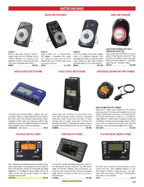 instrument. Single LED beat indicator. and includes earphone. pitch, LED display and includes earphone. Tempo Sounds • Available in Black